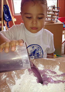The consistency and texture changes that occur as it is touched, along with the changes in color, and the ability to create their own free flowing Art, made this whole process exciting for the kids.